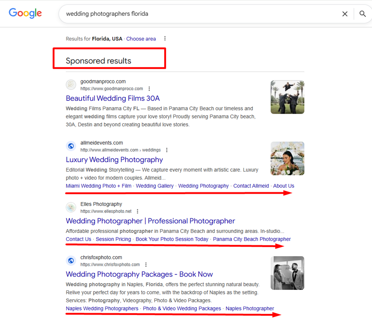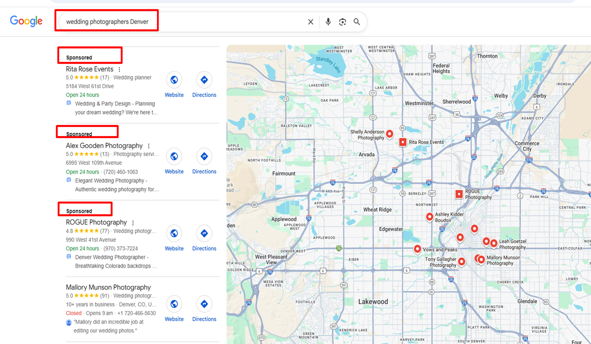 photographer available,” “commercial photoshoot services.”. Google Ads places